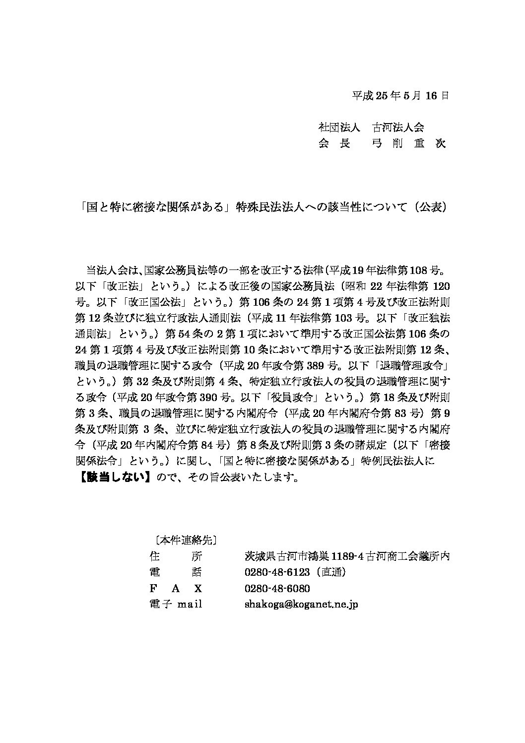 「国と特に密接な関係がある」特殊民法法人への該当性について(公表)